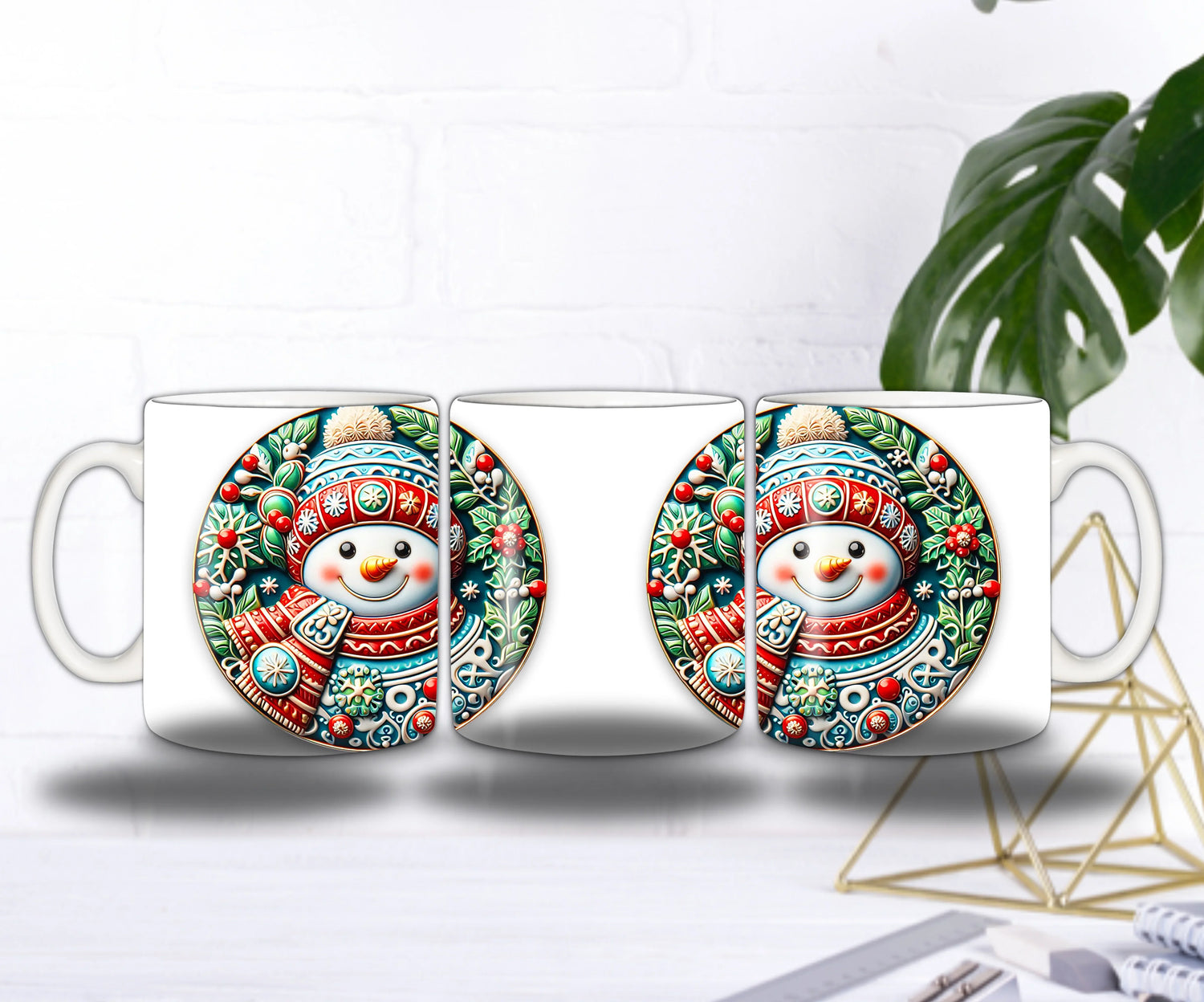 Autour de lui, une véritable explosion de motifs et décorations de Noël : flocons ciselés, baies rouges, branches de houx, détails givrées et couleurs vibrantes qui rappellent les plus beaux ornements de fête.