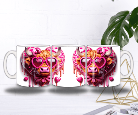 Mug Saint-Valentin Vache Rose – Lunettes Cœur & Humour Love (Sublimation)