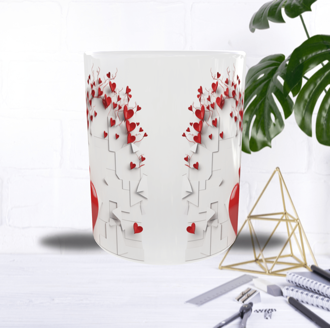 Mug Saint-Valentin “Arbre de Vie” – Cœurs Rouges 3D en Sublimation