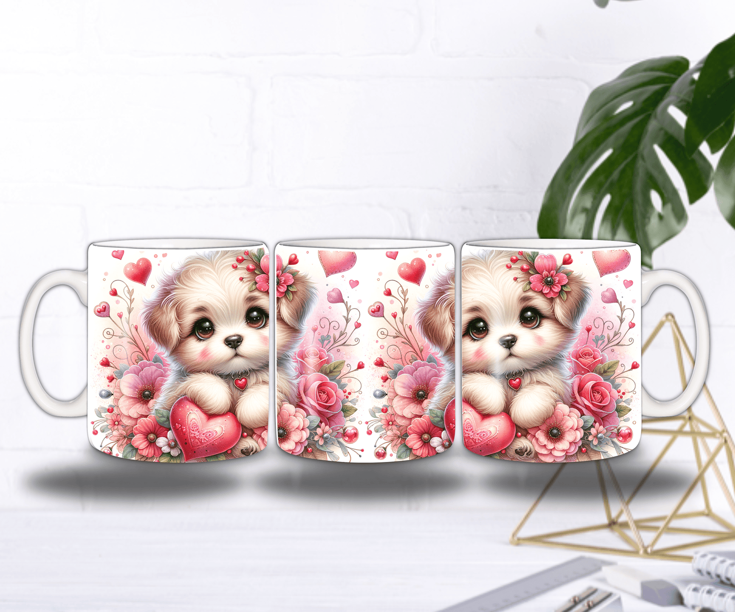 Mug Saint-Valentin Chien & Cœurs – Chiot Fleuri Romantique (Sublimation)