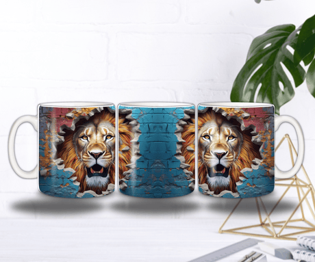 Mug Lion Blanc 3D — L’Éclat du Roi qui Traverse le Mur