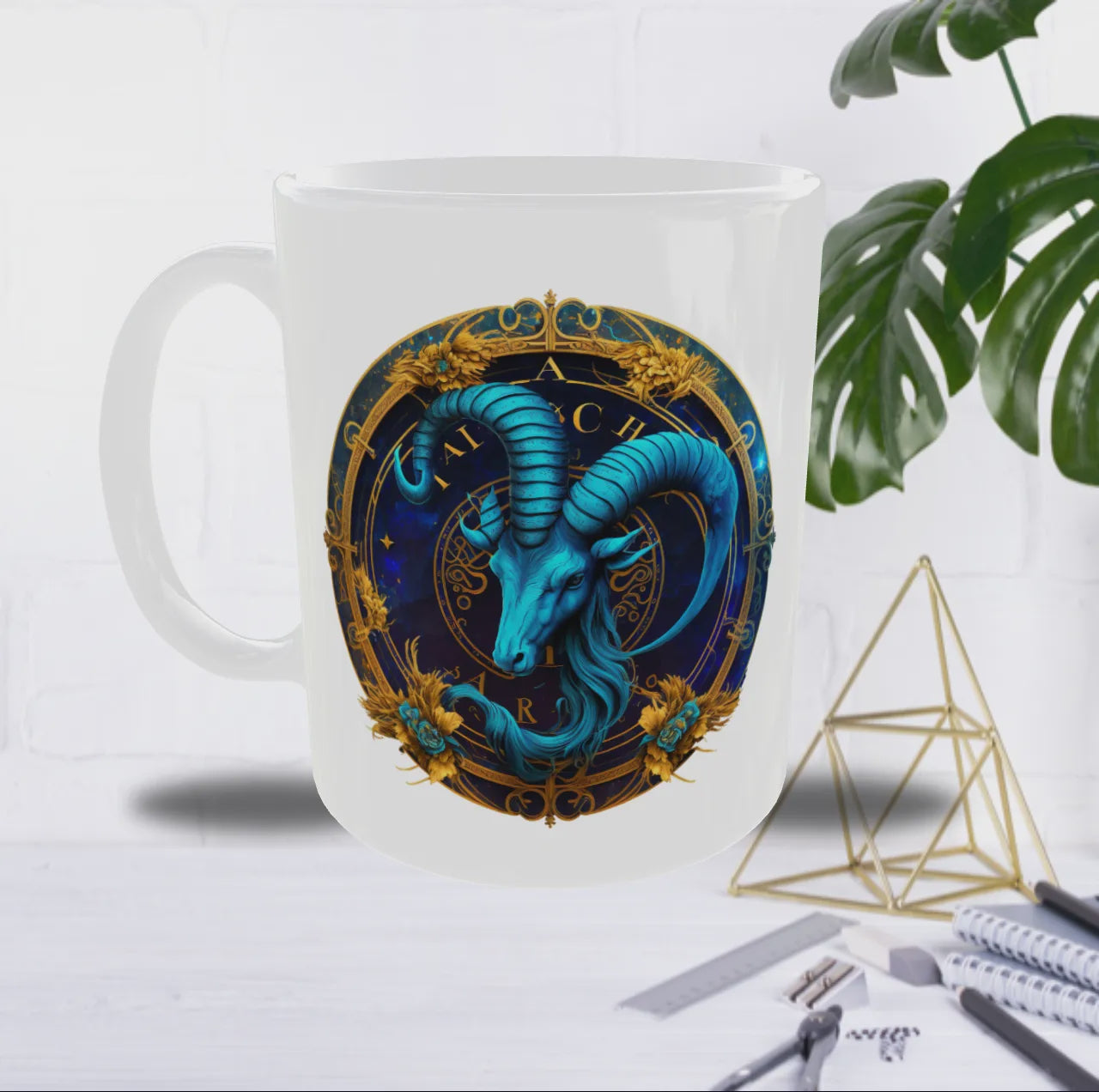 Sérieux, élégant et incroyablement déterminé : ce mug met à l’honneur le Capricorne, signe de la maîtrise et de la réussite construite pas à pas. Son visuel majestueux, avec une tête de bouc bleu profond entourée d’un cercle astral aux touches dorées, évoque la force tranquille et la noblesse de ce signe de Terre.