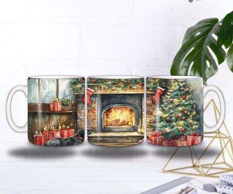 🐾 Mug de Noël – Le Chien au Coin du Feu 🎄🔥