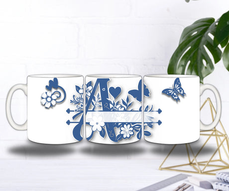 Mug Personnalisé Initiale A–Z – Sublimation Bleue & Prénom au Choix