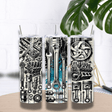 Avis aux passionnés de moteurs, d’atelier et de belles mécaniques : ce tumbler est un vrai clin d’œil au monde du garage ! Son design ultra détaillé rassemble une multitude de pièces mécaniques et d’outils emblématiques (clés, pistons, écrous, bloc moteur, jante…), dans un style illustration noir & blanc avec une touche de bleu qui donne du caractère.
